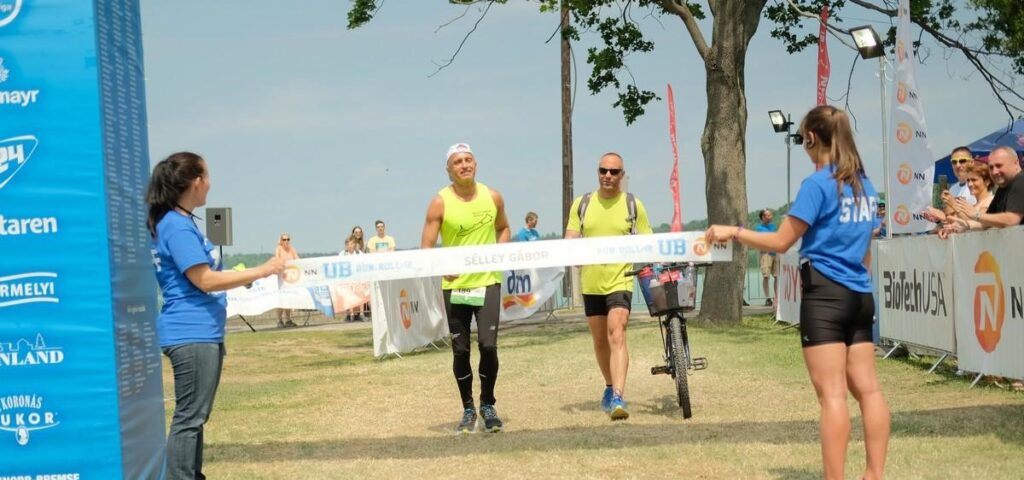 65 körül találkoztunk Erikaval, itt kezdődött az egész futás számomra legélvezetesebb része, kb 25 km-t haladhattunk együtt. Gyönyörű táj, szólt a bicajról 112 magyar zene, amit gondosan előre összeválogattam. Két őrült futó, két őrült biciklis kísérő, ment a küzdés a kilométerekkel és közben dőltek a poénok. Tünde nélkül is szegényebb lett volna ez az UB, az biztos. Nagyon meleg volt, de elfogadtuk – mi mást tehettünk volna? Bíztam benne, hogy a lapos Föld elmélet nem igaz, és előbb-utóbb kifordulunk a Nap szorításából. Remek szakaszok voltak, élveztem nagyon. Lassacskán szétváltunk, de szerencsére még többször találkoztunk az út során, utoljára Balatonföldváron. Erika végül bronzérmesként ért be, hihetetlen erő van benne és még nagyon fiatal. Sokat fogunk még hallani róla és én nagyon büszke leszek ezekre a közösen megfutott km-ekre.